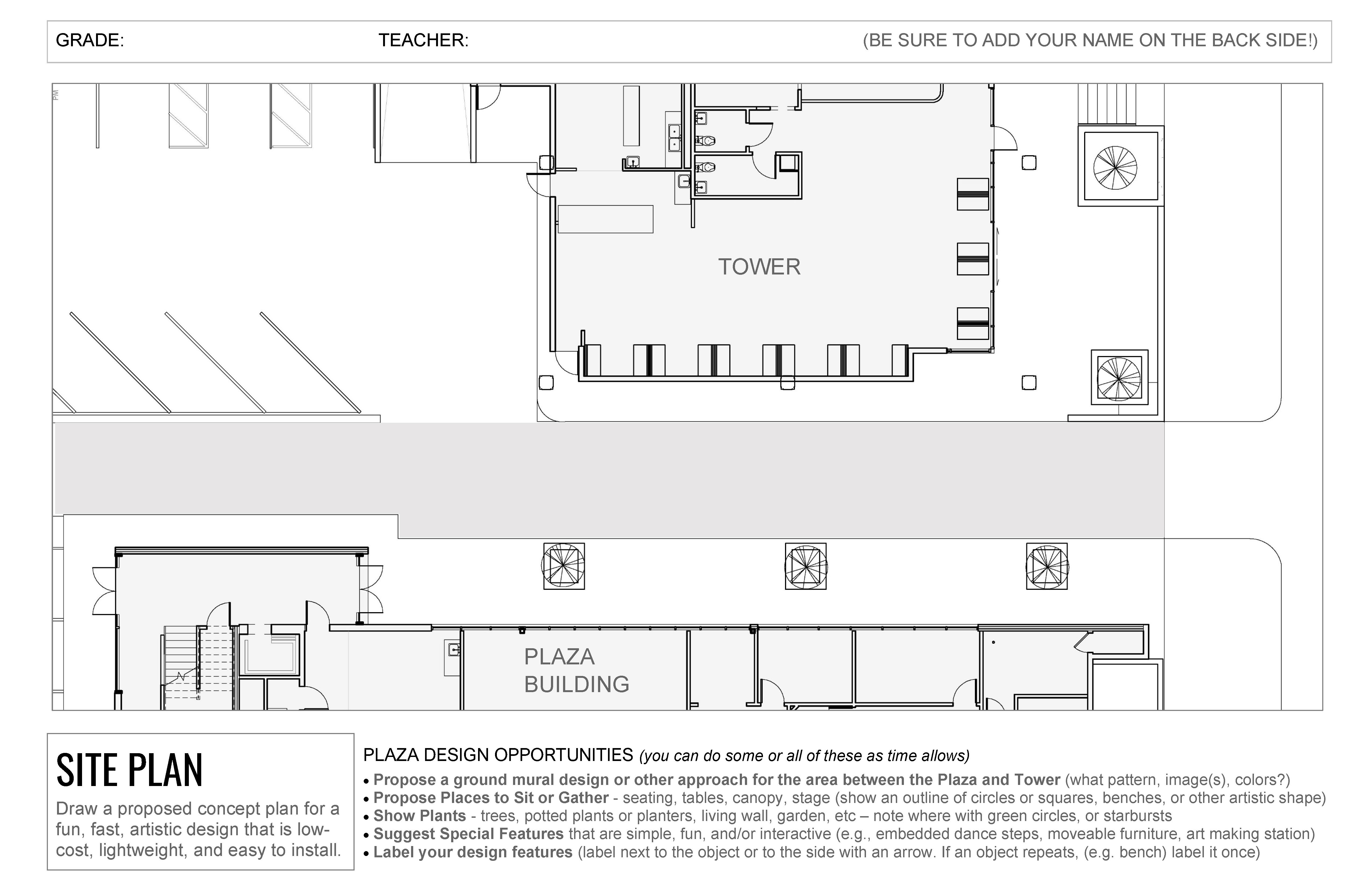 Quick Option 1: Use one or more of the design templates. You can illustrate your ideas visually or describe it with words. Instructions are on the front of each pre-formatted template. A priority is the ground mural on the Site Plan Template, everything else is a bonus.